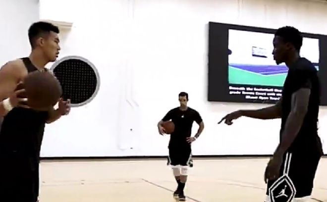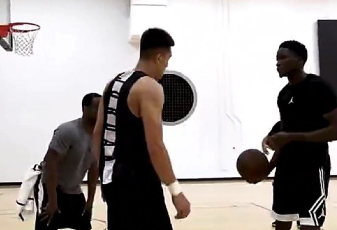 郭艾伦和奥拉迪波一起训练,年长一岁的奥拉迪波,还亲自教了郭艾伦几个上篮的动作,比如说背对防守人接球后如何通过背转身迅速摆脱对方上篮等等。