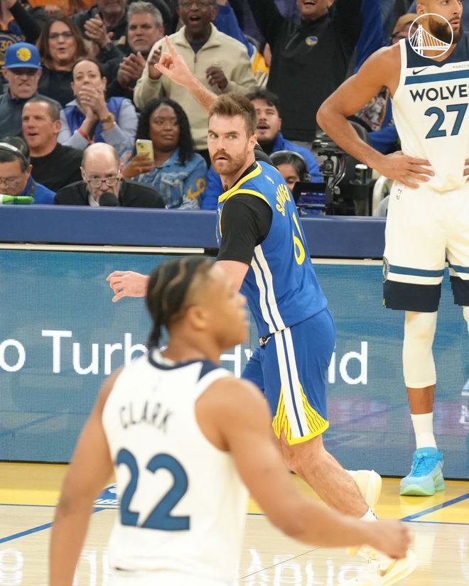 森林狼队的兰德尔得到27分、9个篮板和6次助攻,戈贝尔得到24分和14个篮板,迪文琴佐得到21分、6个篮板和4次助攻,里德得到20分、4个篮板和7次助攻,麦克丹尼尔斯得到17分、5个篮板和5次助攻。勇士队的库里得到39分、5个篮板和5次助攻,普斯特得到16分和6个篮板,巴特勒得到15分、8个篮板和5次助攻,斯宾塞得到12分、5个篮板和4次助攻,穆迪得到11分和4个篮板。