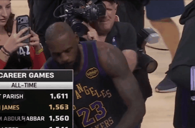 当然,但这一节詹姆斯也不知不觉拿到了本场比赛第11分,连续第1293场得分上双。