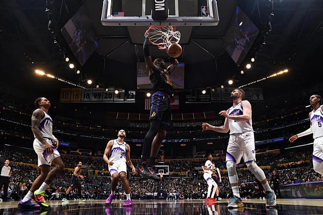 湖人逆转爵士3连胜 勒布朗首秀11+12东契奇37+5+10
