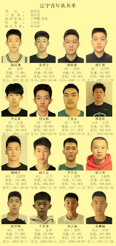 都说只有好马才配得上好鞍,辽宁U18男篮的球员阵容也很强,除了已经提到的攻守兼备的中锋于善元,还有另外两名中锋张博铭和张翀赫。小前锋分别是赵宣翔、张轩睿、付远旭、李中奇、王奕龙和刘子扬;大前锋分别是张轩铭、胡涵宇、徐子淏;后卫分别是赵长宏、孙乾皓、李孟希、泰孝宇,总共16人。