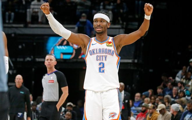 聊到这个话题,那不妨看一下亚历山大的数据栏,新赛季他场均贡献31.9分(联盟第3)6.6助攻(联赛第16)1.5抢断(联盟第29),投篮命中率53.4%(联盟第22),三分命中率40.4%(联盟第52),多项数据都名列前茅,与此同时,他场均仅出场33.2分钟,排在联赛第34位,明显低于其他当家球星。这代表着,亚历山大的比赛效率出奇的高,在有限的上场时间里可以打出成吨的输出。