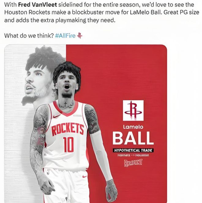 对于火箭,他们正处在“赢在当下”的临界点。拥有杜兰特和申京的火箭,已构建起以进攻为核心的争冠框架,但范弗利特的突然赛季报销,让球队一号位陷入真空。尽管阿门-汤普森、谢泼德能临时顶替,但阿门擅长侧翼冲击,组织能力有限,谢泼德擅长投射,关键时刻伤缺经验以及稳定性。拉梅洛-鲍尔的到来,恰好能填补这一致命短板。