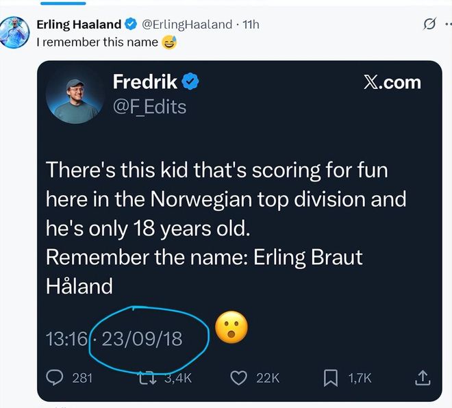 哈兰德翻出8年前帖子,当时已有球迷预测他将有大发展