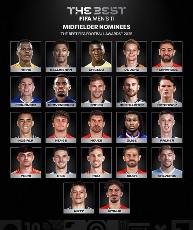 大内维斯虽然在沙特踢了很长时间的球,但状态保持不错,甚至入选了FIFA国际足联2025年最佳阵容的中场候选,他的旁边就是另一内维斯——巴黎圣日耳曼的若昂·内维斯,也算相映成趣。