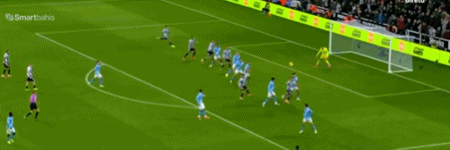 第68分钟,多库和B席战术角球传中造成了纽卡门前混战,霍尔解围变乌龙助攻,迪亚斯近距离抽射产生折射弹进网窝,1:1!曼城立马做出回应,这也是迪亚斯4年多以来的首个英超进球。第70分钟,场上风云再起;沃尔特马德发挥身高优势高高跃起头球摆渡,后门柱的吉马良斯头球接力击中了立柱,哈维-巴恩斯近距离补射再度将比分反超,1:2!双方浪费了不少得分机会后,又在短短7分钟合力打进3球。