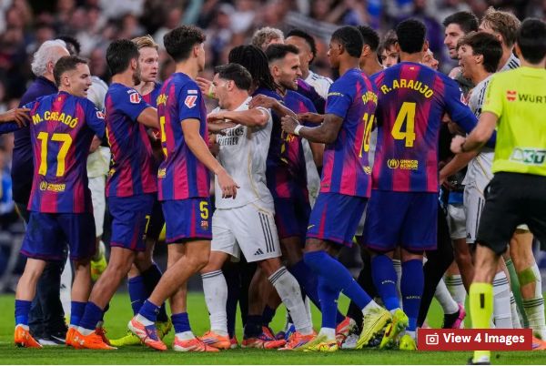 终场混战爆发后,双方替补席也在场边陷入混乱,皇马主帅哈维·阿隆索甚至进入场内拉走自己的球员。