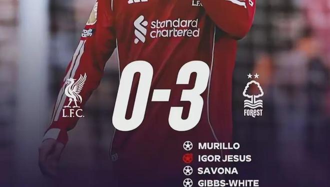 安菲尔德之夜:利物浦0-3惨败诺丁汉森林