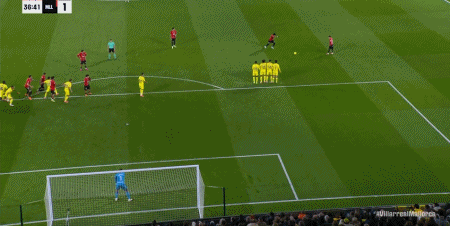 第37分钟,莫希卡任意球直接攻门,皮球击中边网