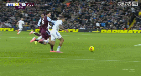 第8分钟,门前乱战,皮球打在恩梅加身上入网,利兹联1-0维拉