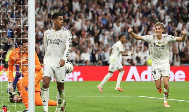 渴望复仇的银河战舰,一上来就在全力进攻,但不得不说这一场他们在伯纳乌的运气不佳,一共3粒进球都因为越位在先被主裁判取消,除此之外,姆巴佩下半场主罚的点球,也被巴萨门将什琴斯尼扑出,但皇家马德里还是靠着贝林厄姆的传射建功,以及姆巴佩的进球,2-1击败了巴塞罗那,一雪上赛季被对手四杀的耻辱,本场比赛结束之后,皇马也把自己在积分榜上领先巴萨的优势扩大到了5分。