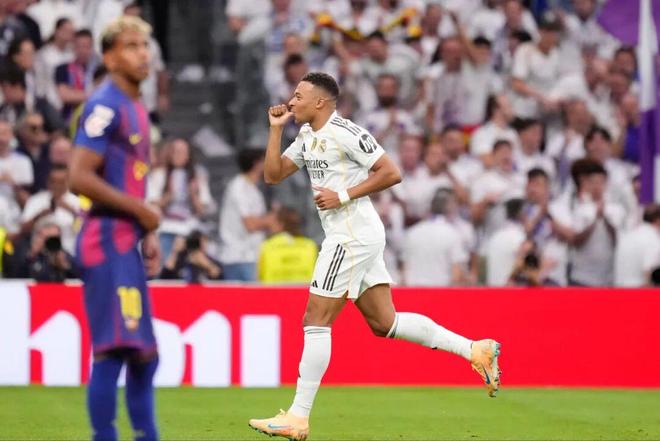 姆巴佩代表皇马4次参加国家德比打进5球,已连续3场取得进球