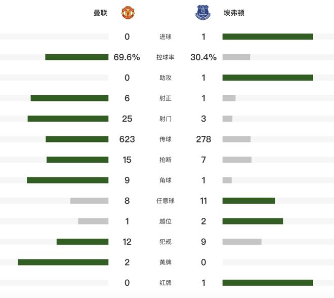 北京时间11月25日,2025-26赛季英超第12轮,曼联主场0-1不敌埃弗顿,5轮不败终结。盖耶掌掴队友被罚下,霍尔打入全场比赛唯一进球。