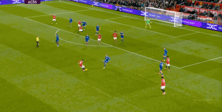 然而,比赛的局势早已被埃弗顿的策略所决定,哪怕换上了芒特,对手也不会给你多少在广阔空间里自如联系弱侧的机会,所以到了下半场,尤其是在埃弗顿体能还能维持的时候,曼联大部分的进攻选择只能是传中: