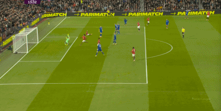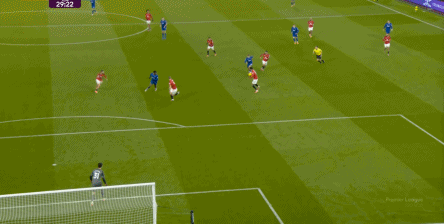 然而在比赛第6分钟,埃弗顿完成了一次非常完整和漂亮的推进,从自家门前开始,格耶假传球真转身,从而直接完成对曼联高位逼抢的破局,随后和中锋配合,衔接到右路完成传中: