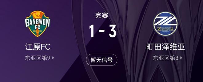 另一场比赛,由江原FCVS町田泽维亚,这场比赛也分出了胜负。