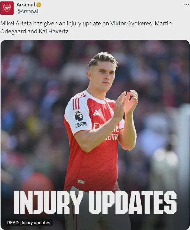 哲凯赖什不是大问题,但踢拜仁上不了,哈弗茨怎么都得下个月再说了吧(但阿尔特塔有点模糊暗示他可能周末就可以复出)……