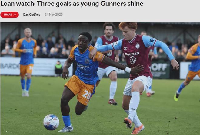 阿森纳官方更新了外租球员比赛报告。